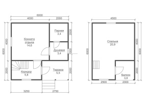 полутораэтажная баня 9 с размерами 6х6 м. позволит устроить отличный отдых для двоих человек или дружеской компании. Данный проект выдерживает все классические каноны бань.
