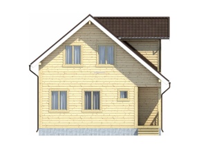 Размеры дома – 7,5х10 м.. Внутренние помещения соединяются межкомнатными дверьми филенчатого типа. Стены возведены из строганного бруса с прокладкой джутового льнополотна. Перекрытие произведено из обрезной доски с последующим использованием ондулина в качестве кровельного материала. Крыша двускатная. Обрешетка выполнена с помощью полуобрезной доски. Монтирование полов включает два этапа: укладка чернового слоя, а затем чистового.