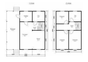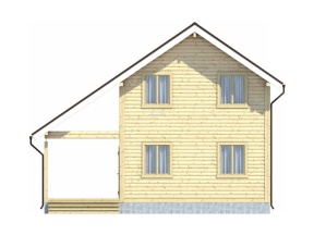 Размеры дома – 9х9 м.. Внутренние помещения соединяются межкомнатными дверьми филенчатого типа. Стены возведены из строганного бруса с прокладкой джутового льнополотна. Перекрытие произведено из обрезной доски с последующим использованием ондулина в качестве кровельного материала. Крыша двускатная. Обрешетка выполнена с помощью полуобрезной доски. Монтирование полов включает два этапа: укладка чернового слоя, а затем чистового.