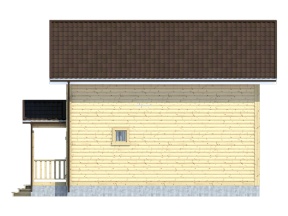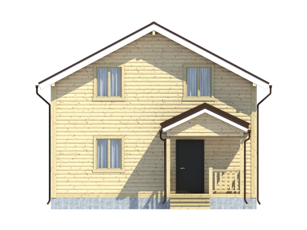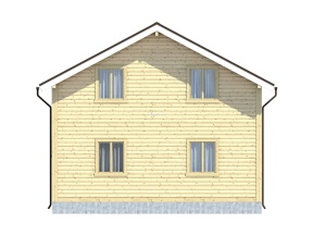 Размеры дома – 8х8 м.. Внутренние помещения соединяются межкомнатными дверьми филенчатого типа. Стены возведены из строганного бруса с прокладкой джутового льнополотна. Перекрытие произведено из обрезной доски с последующим использованием ондулина в качестве кровельного материала. Крыша двускатная. Обрешетка выполнена с помощью полуобрезной доски. Монтирование полов включает два этапа: укладка чернового слоя, а затем чистового.