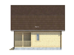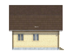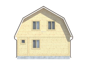 Размеры дома – 7,5х8 м.. Внутренние помещения соединяются межкомнатными дверьми филенчатого типа. Стены возведены из строганного бруса с прокладкой джутового льнополотна. Перекрытие произведено из обрезной доски с последующим использованием ондулина в качестве кровельного материала. Крыша двускатная. Обрешетка выполнена с помощью полуобрезной доски. Монтирование полов включает два этапа: укладка чернового слоя, а затем чистового.
