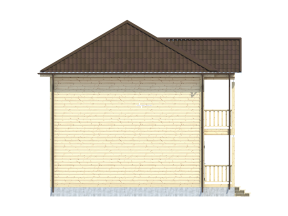 Размеры дома – 8х7,5 м.. Внутренние помещения соединяются межкомнатными дверьми филенчатого типа. Стены возведены из строганного бруса с прокладкой джутового льнополотна. Перекрытие произведено из обрезной доски с последующим использованием ондулина в качестве кровельного материала. Крыша двускатная. Обрешетка выполнена с помощью полуобрезной доски. Монтирование полов включает два этапа: укладка чернового слоя, а затем чистового.