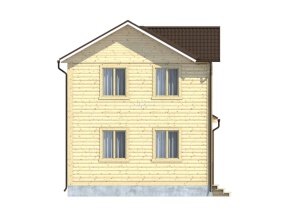 Размеры дома – 6х8 м.. Внутренние помещения соединяются межкомнатными дверьми филенчатого типа. Стены возведены из строганного бруса с прокладкой джутового льнополотна. Перекрытие произведено из обрезной доски с последующим использованием ондулина в качестве кровельного материала. Крыша двускатная. Обрешетка выполнена с помощью полуобрезной доски. Монтирование полов включает два этапа: укладка чернового слоя, а затем чистового.