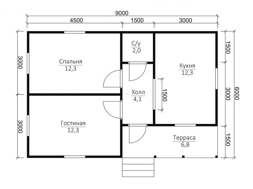 Проект 49 одноэтажного дома с выполнен в размерах по внешним граням стен 6х9 м.. Каркасные стены здания имеют толщину 150 мм. Компактный дом послужит уютным пристанищем для дачного сезонного отдыха или постоянного проживания с семьей. Общая площадь дома – кв.м..