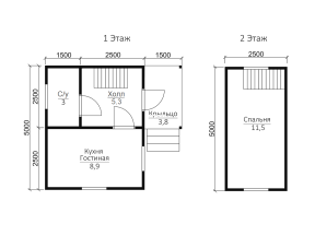 Проект 2 полутораэтажного дома с выполнен в размерах по внешним граням стен 5х4 м.. Каркасные стены здания имеют толщину 150 мм. Компактный дом послужит уютным пристанищем для дачного сезонного отдыха или постоянного проживания с семьей. Общая площадь дома – 29.79 кв.м..