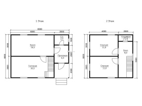 Проект 22 двухэтажного дома с выполнен в размерах по внешним граням стен 6х8 м.. Каркасные стены здания имеют толщину 150 мм. Компактный дом послужит уютным пристанищем для дачного сезонного отдыха или постоянного проживания с семьей. Общая площадь дома – 70 кв.м..