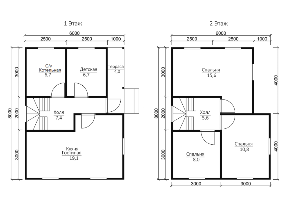 Проект 57 двухэтажного дома с выполнен в размерах по внешним граням стен 6х8 м.. Каркасные стены здания имеют толщину 150 мм. Компактный дом послужит уютным пристанищем для дачного сезонного отдыха или постоянного проживания с семьей. Общая площадь дома – кв.м..