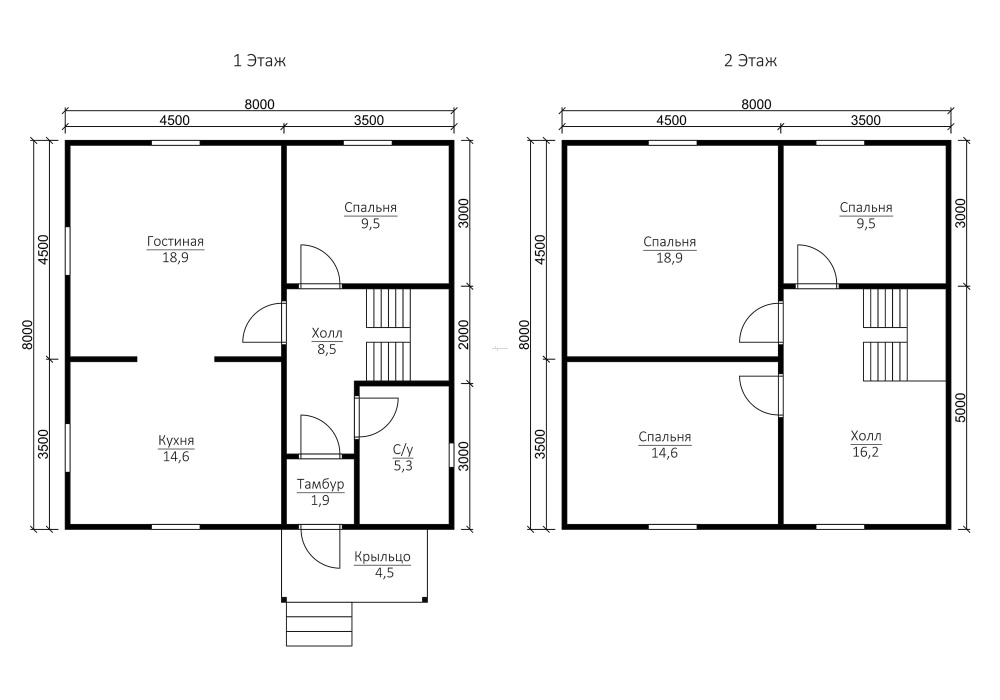 Самые востребованные размеры: мини - до 50 м2 (в большинстве случаев, одноэтажные дома); компактные - от 70 до 100 кв. М (обычно 2х этажные); большие - от 150 кв. М и свыше.