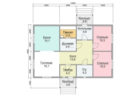 Проект 138 одноэтажного дома с выполнен в размерах по внешним граням стен 8х12 м.. Каркасные стены здания имеют толщину 150 мм. Компактный дом послужит уютным пристанищем для дачного сезонного отдыха или постоянного проживания с семьей. Общая площадь дома – 88 кв.м..